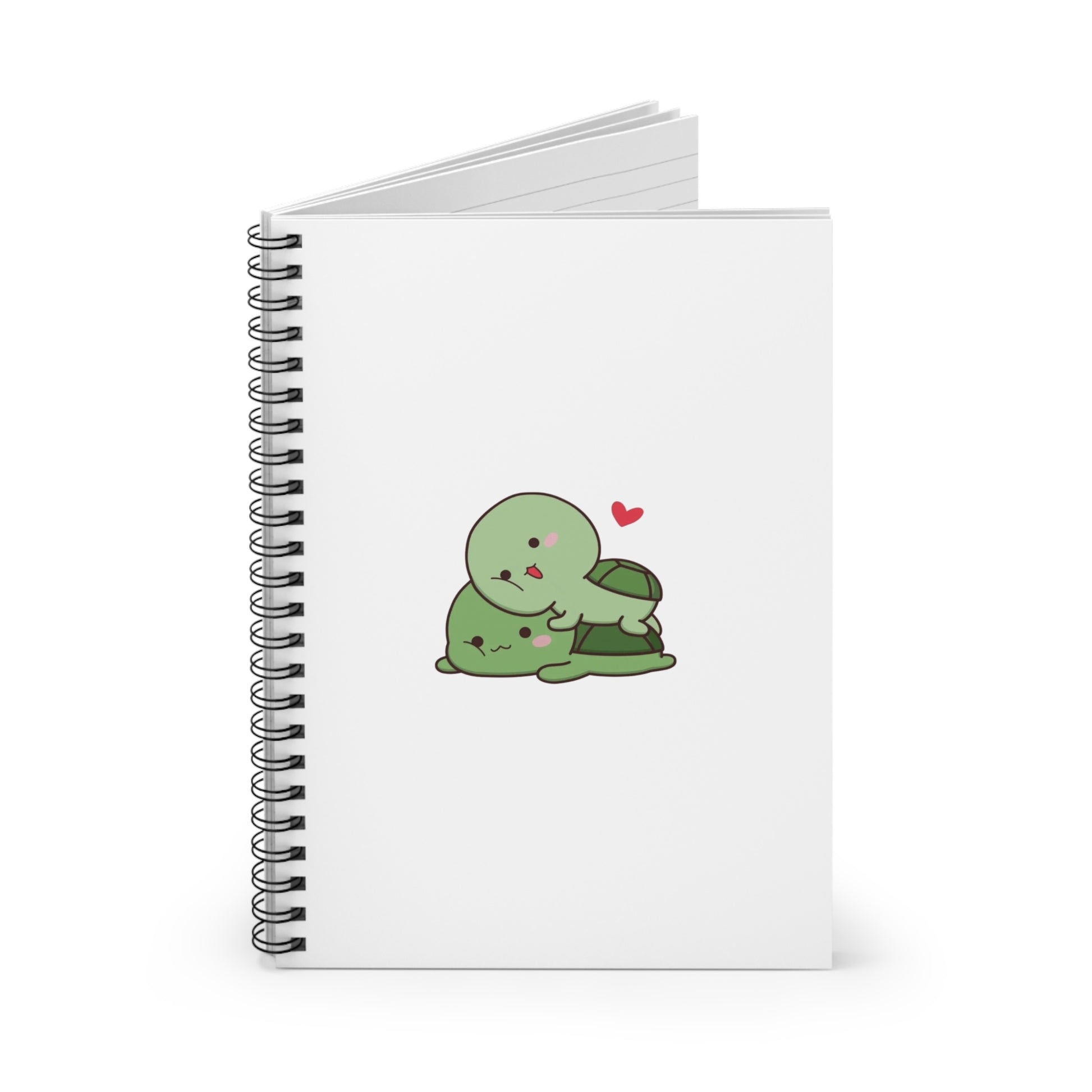 Love is slow, steady, and oh-so-sweet — just like these two cuddling turtles. This Cuddling Turtles A5 spiral notebook features an irresistibly cute design of one turtle resting on top of the other, surrounded by soft hearts and cozy vibes. Whether you're journaling your thoughts or simply admiring the cuteness, this notebook is pure emotional comfort on every page.